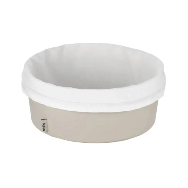 Хлібниця KELA Grana для хліба і булочок виготовлена зі штучної шкіри з бавовняним мішечком всередині. Цей тканинний мішок можна прати за 30°C, і його можна затягнути шнурком. Мішечок також захищає випічку від висихання. Приємна деталь: контраст мішка з його білою внутрішньою частиною і темнішою зовнішньою частиною з ПУ шкіри. Хлібниця Grana доступна в різних розмірах і кольорах. Розміри: 28 см Ø, висота 11 см. Колір: чорний