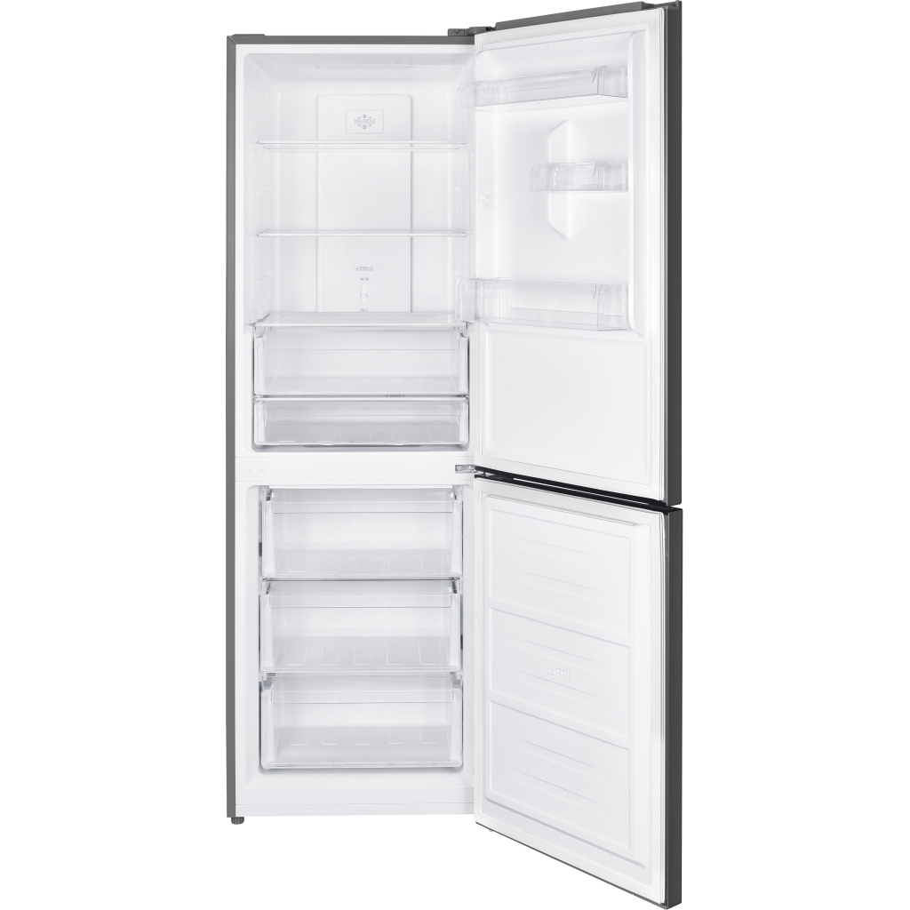 Одна з головних переваг моделі — це система Total No Frost, яка дозволяє уникнути утворення інею і зайвого конденсату, що значно полегшує догляд за холодильником. Це інноваційне рішення забезпечує рівномірний розподіл потоків холодного повітря по всій площі як холодильної, так і морозильної камери, завдяки чому ваші продукти завжди будуть залишатись свіжими і збережуть свої властивості. Холодильна камера з корисним об'ємом 218 літрів має три полиці та три дверні корзини, призначені для зручного розташування товарів різного розміру. Спеціальна полиця для пляшок, розташована в дверях, дозволяє ефективно використовувати внутрішній простір, а два контейнери для овочів зручно вмістять свіжі овочі і фрукти на більш тривалий час.