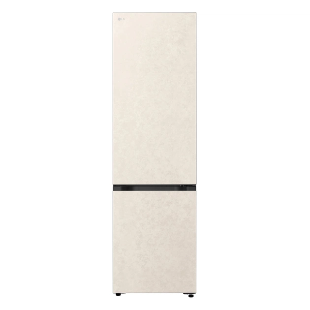 Холодильник LG GC-B509EESM з нижньою морозильною камерою має корисний об’єм 375 л (262 л холодильне + 113 л морозильне відділення) і належить до енергетичного класу E. Інверторний компресор забезпечує тиху роботу на рівні 35 дБ та потужність заморожування до 10 кг на добу. Система Total No Frost усуває потребу в розморожуванні, а Metal Fresh разом із зонами Fresh Converter та Fresh Balancer дозволяють підтримувати оптимальні умови для різних типів продуктів. Бежевий матовий колір корпусу та прихована горизонтальна ручка створюють м’який, нейтральний вигляд.