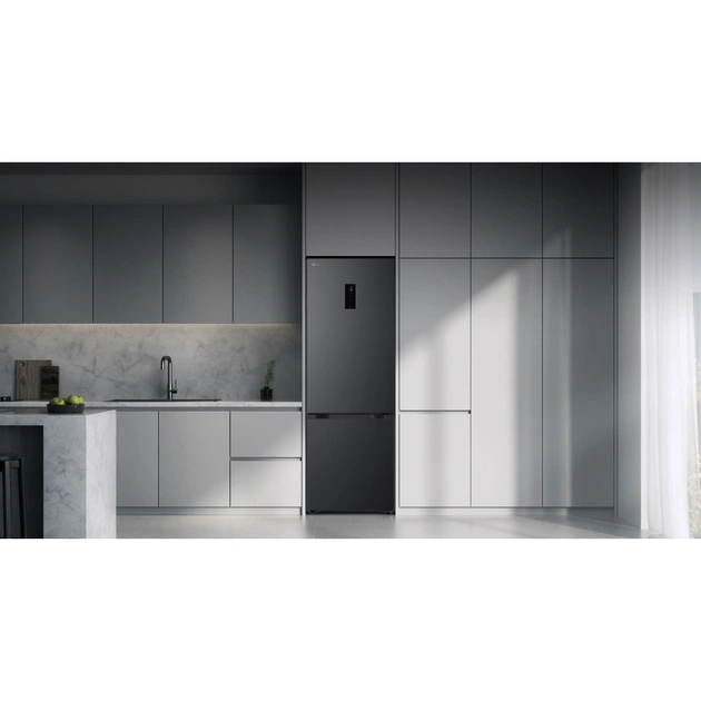 Холодильник LG GC-B509ETTM з нижньою морозильною камерою має загальний корисний об'єм 375 л (262 л холодильне відділення + 113 л морозильне). Пристрій оснащений інверторним компресором, системою Total No Frost, технологією DoorCooling+ та зовнішнім LED-дисплеєм. Зони Fresh Balancer і Fresh Converter дозволяють точно регулювати вологість і температуру для різних продуктів. Річне споживання енергії становить 263 кВт·год (клас E), рівень шуму - 35 дБ.