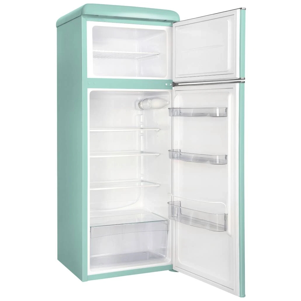 Колекція ретро-холодильників SNAIGĖ пропонує стиль, який звертається до самовиразних особистостей, що цінують індивідуальність та неповторний дизайн. Бірюзовий колір додає яскравості будь-якому простору, роблячи холодильник не просто функціональним елементом, але і акцентним об’єктом, здатним стати центром уваги у вашому сучасному домі, лофті чи офісі.