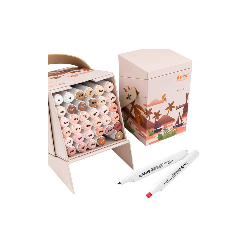 36 тілесних тонів: вибір унікальних кольорів тілесних тонів, що ідеально підходять для малювання фігур, портретів і розмальовки мультиплікаційних ролей. Кольорові маркери ALP 36 дають змогу із легкістю створювати різні стилі, ескізи та візерунки, працювати з більшістю творів мистецтва.