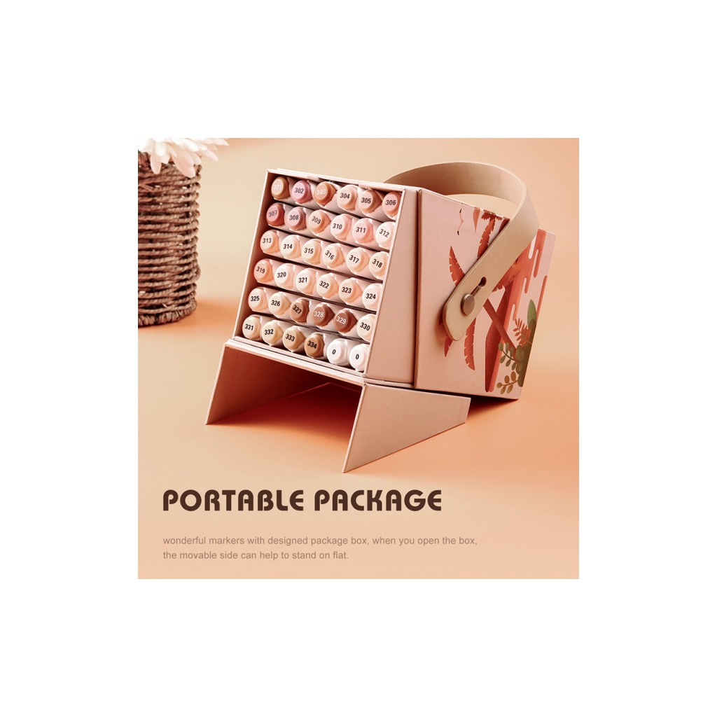 Більш організовано, простіше зберігати: чудові маркери з дизайнерською пакувальною коробкою. Коли ви відкриваєте коробку, рухома сторона виконує функцію підставки на рівній поверхні. Є сітка для пакування маркерів і ручка для перенесення. Порожній ящик також можна використовувати для зберігання.