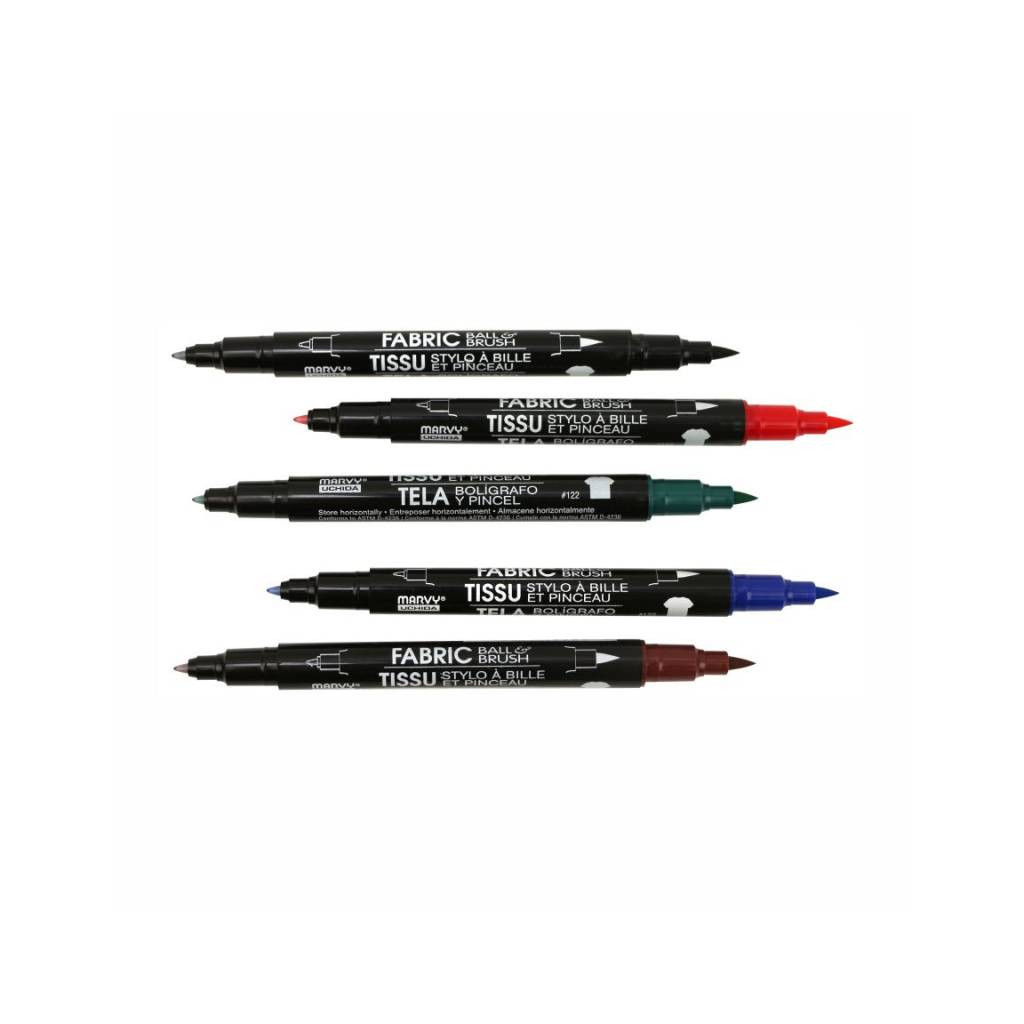 Маркер д/св тканин, двосторонній, 1-2мм, 0,75мм, (колір), Fabric ball&Brush, Marvy – двосторонній: з одного боку з кистю 1-2мм, з іншого - з тонким накінечником 0,5мм, містять безкислотне пігментне чорнило. Призначені для маркування, малювання та письма на більшості світлих тканин (особливо на бавовні), також підходять для паперових робіт.Кольорова гама: чорний, червоний, синій, зелений, жовтий, коричневий.Основні характеристики: двосторонні з кистю і тонким накінечником; безкислотні, не токсичні; перманентні, пігментні, швидковисихаючі; не вимагають фіксації праскою; при пранні не линяють (вимагають делікатних режимів машинного прання до 40 градусів); пишуть практично на всіх типах тканин.Спосіб використання. Перед початком роботи привести в робочий стан: струсити, натиснути декілька разів на стержень, доки фарба не просочиться на ньому. Після закінчення роботи щільно закрити ковпачок для уникнення пересихання чорнил.Умови зберігання. Маркери не висихають впродовж 3-хроків. Транспортування можливе при -10 до +25. Зберігати маркери рекомендується горизонтально.
