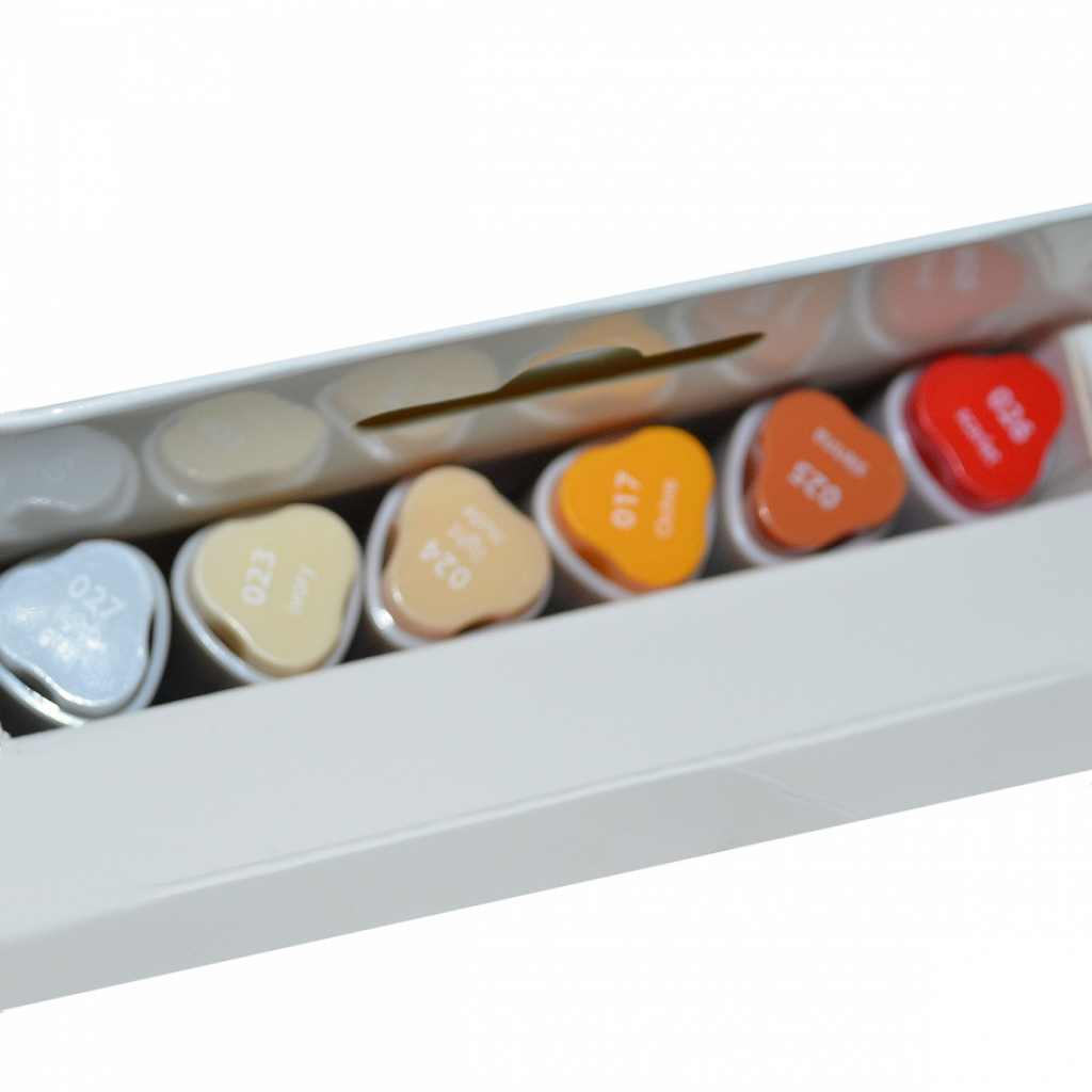 Скетч-маркери SANTI - це безмежні можливості для ваших малюнків! Тематичний набір "Skin Tones" складається з 6 відтінків, які ідеально підходять для малювання портретів. Водорозчинні, світлостійкі чорнила призначені для живопису і малювання в змішаних техніках. Поєднують в собі властивості маркерів і акварельних фарб. Для досягнення акварельного ефекту можна розмити деталі малюнка за допомогою змоченого водою пензля на папері або розбавити водою чорнило на палітрі. Оснащені двома видами наконечників: м'який пензель для точної деталізації малюнка і долото - для заповнення великих фрагментів. Для роботи можна використовувати акварельний папір або спеціальний папір для малювання маркерами. Склад набору : 023 айвори, 024 ясно-тілесний, 017 темно жовтий, 025 сієна, 026 яскраво-червоний, 027 світло-сірий