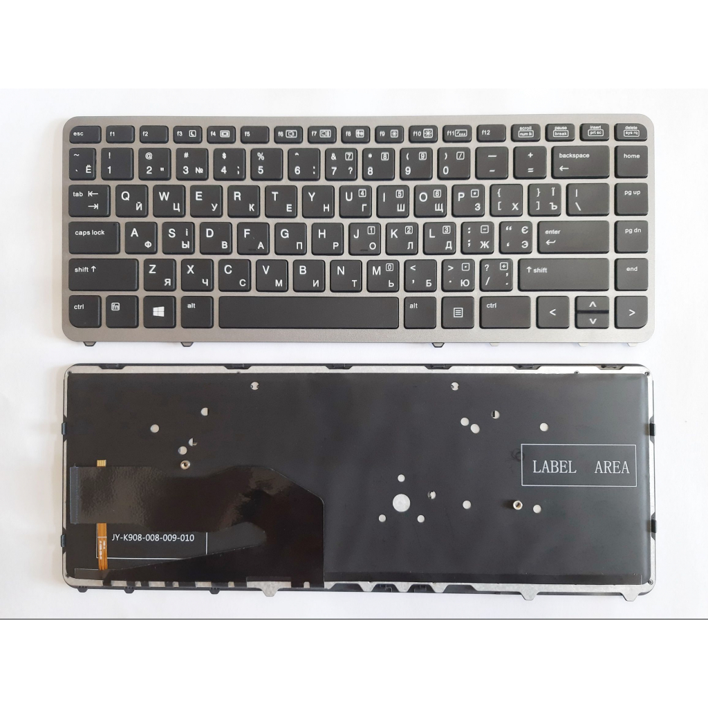 Клавіатура ноутбука HP EliteBook 840, 850 G1/G2, ZBook 14 G1/G2 чорна зі сріблястою рамкою та підсвіткою (A46121)
