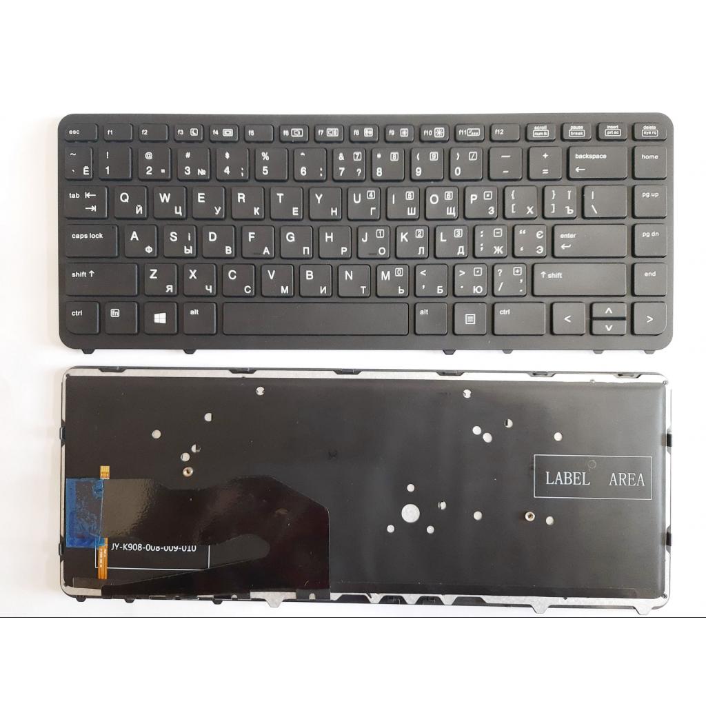 Клавіатура ноутбука HP EliteBook 840 G1/G2, 850 G1/G2 чорна з чорною рамкою та підсвіткою UA (A46122)