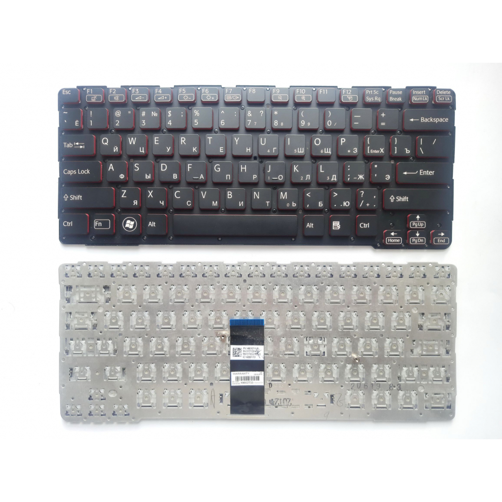 Клавіатура ноутбука Sony E14 Series чорна з червоним кантом, без рамки, з підсвіткою RU (A43567)