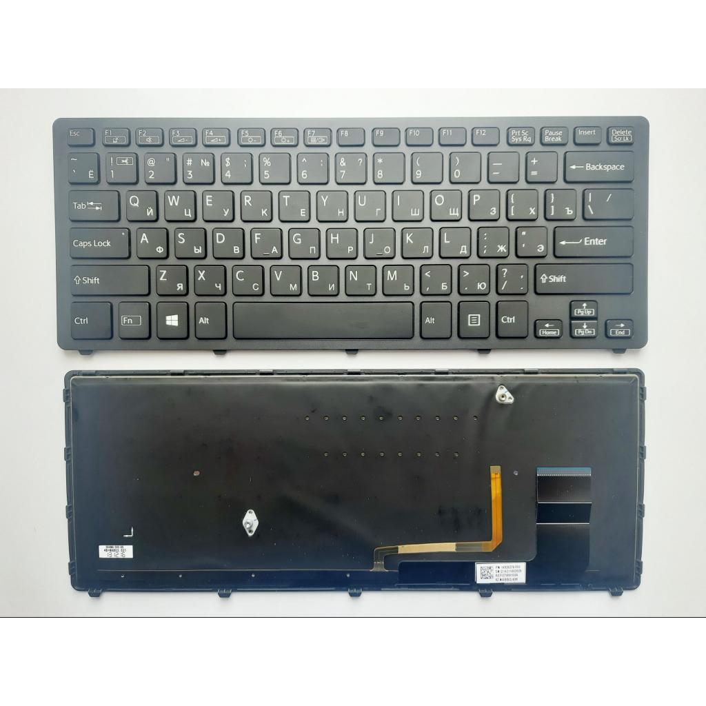 Клавіатура ноутбука Sony SVF14N (Fit 14N Series) чорна з чорною рамкою та підсвіткою RU (A43814)