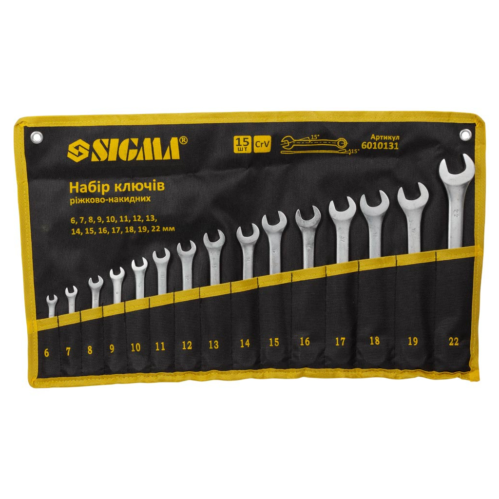 Ключ Sigma набір ріжково-накидних 15шт 6-22мм CrV satine, тк чохол (6010131)