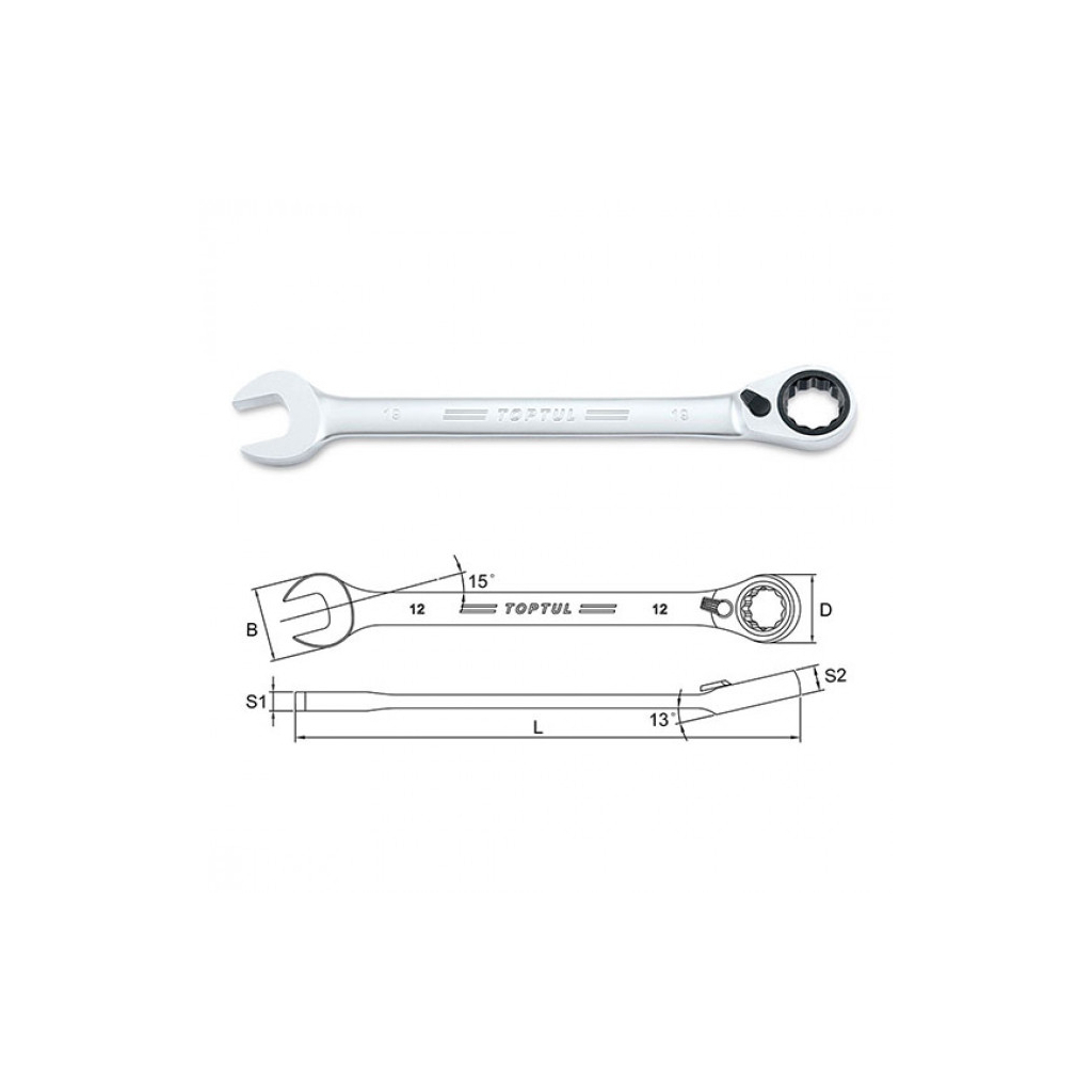 Ключ комбінований Toptul з реверсивною тріскачкою 6 мм.