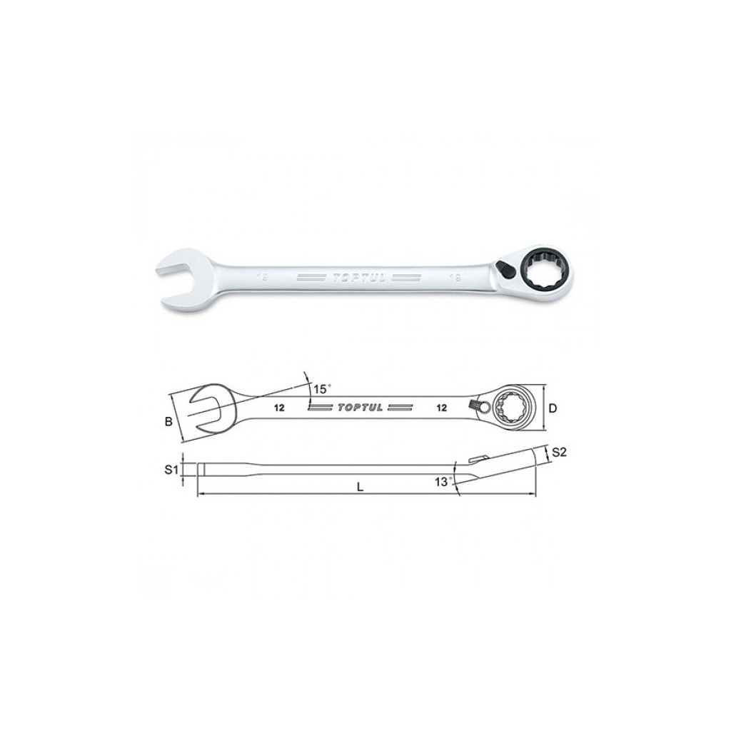 Ключ Toptul комбінований з тріскачкою 19мм (ABAF1919)