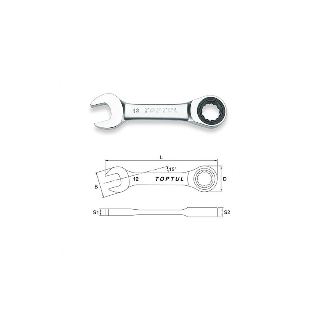 Ключ Toptul комбінований з тріскачкою укорочений 14мм (AOAB1414)