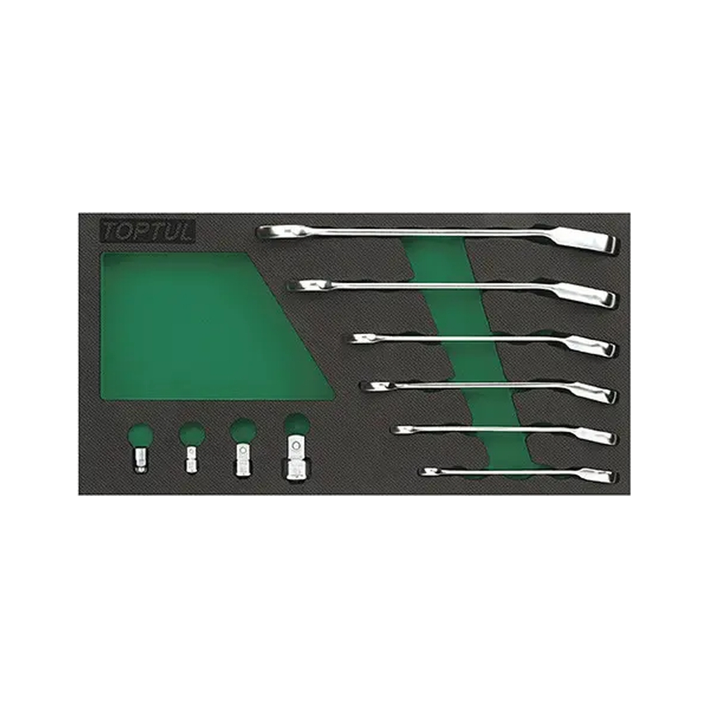 Ключ Toptul тріскачковий комбінований 8-19мм + перехідник (GVA1017)