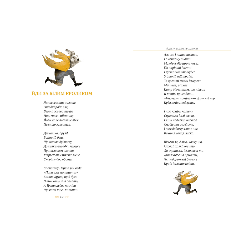 Ця книжка — шедевр дитячої літератури. Ще за життя автора її було перевидано більше ніж тридцять разів. Герої книжки — Капелюшник, Солоний Заєць, Чеширський Кіт та інші стали улюбленими для багатьох поколінь юних читачів і їхніх батьків, діставши прописку в прислів’ях і приказках. У захваті від цієї повісті була навіть англійська королева Вікторія.