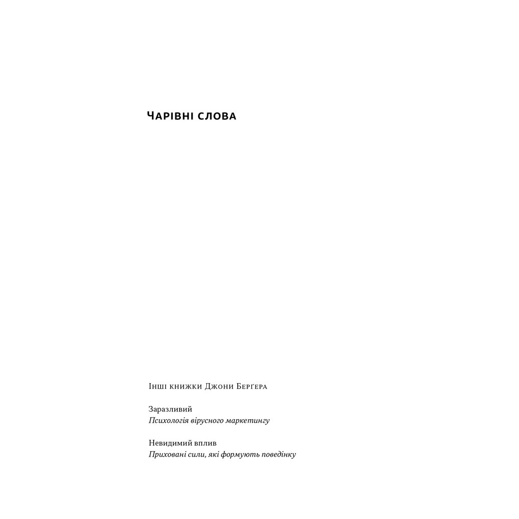 Зараз у ваших руках, безсумнівно, книжка про чарівні слова, що розкриє неочевидні наукові принципи того, як працюють фрази з такими словами і як за допомогою них переконувати, поглиблювати стосунки й бути успішнішими.