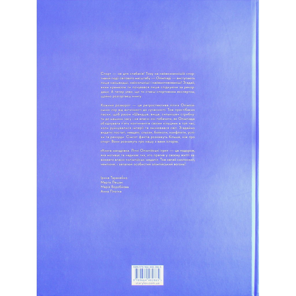 «Книга-мандрівка. Літні Олімпійські ігри» — це подорож, яка мотивує та надихає тих, хто прагне у своєму житті завоювати власні «олімпійські медалі». Тож хапай смолоскип, чемпіоне, і запалюй особистий олімпійський вогонь!