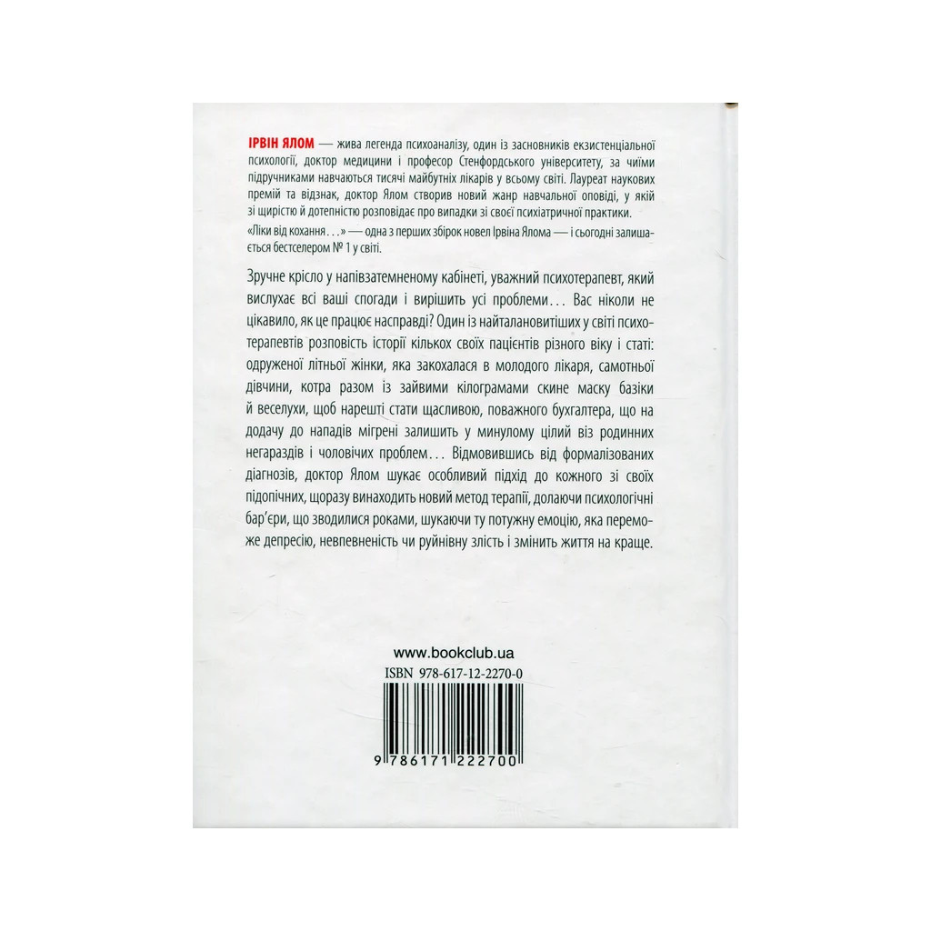 «Ліки від кохання та інші оповіді психотерапевта» — світовий бестселер психології, який протягом 30 років залишається в рейтингах найкращих книг, написаний легендою психоаналізу!