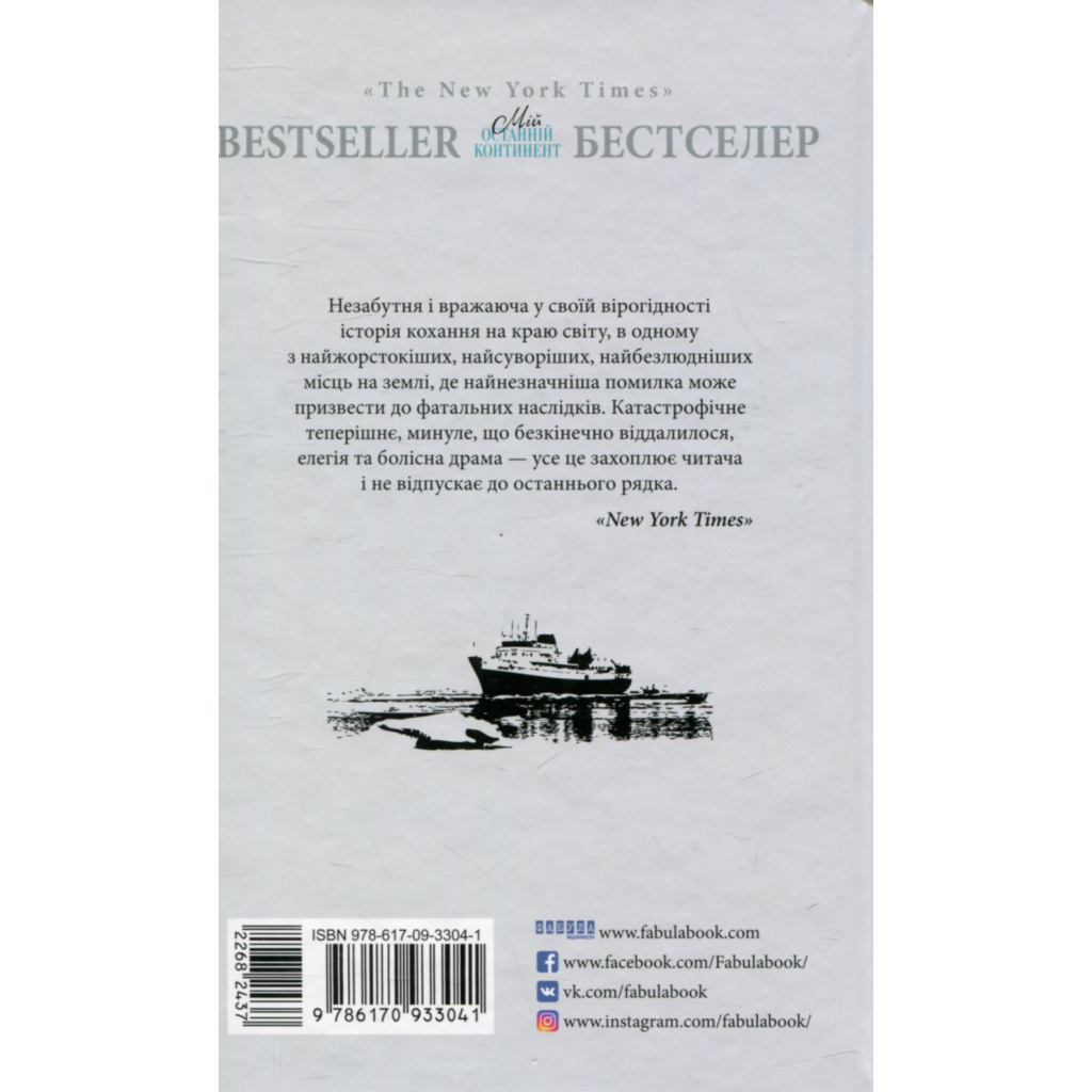 Дебютний роман американської письменниці Мідж Реймонд, що побачив світ улітку 2016 року, приніс автору блискучий успіх. Ця могутня, багатопланова любовно-пригодницька оповідь, дія якої розгортається в екстремальних умовах. Двоє молодих людей — Деб і Келлер — працюють гідами на круїзних судах, які доправляють туристів в Антарктиду. Водночас вони займаються науково-дослідницькою роботою — вивченням екології середовища проживання пінгвінів. Між ними виникає глибоке почуття — та герої вимушено розлучаються. А потім у їхні долі вдирається рокова катастрофа в Південному океані — серед льодів Антарктики.