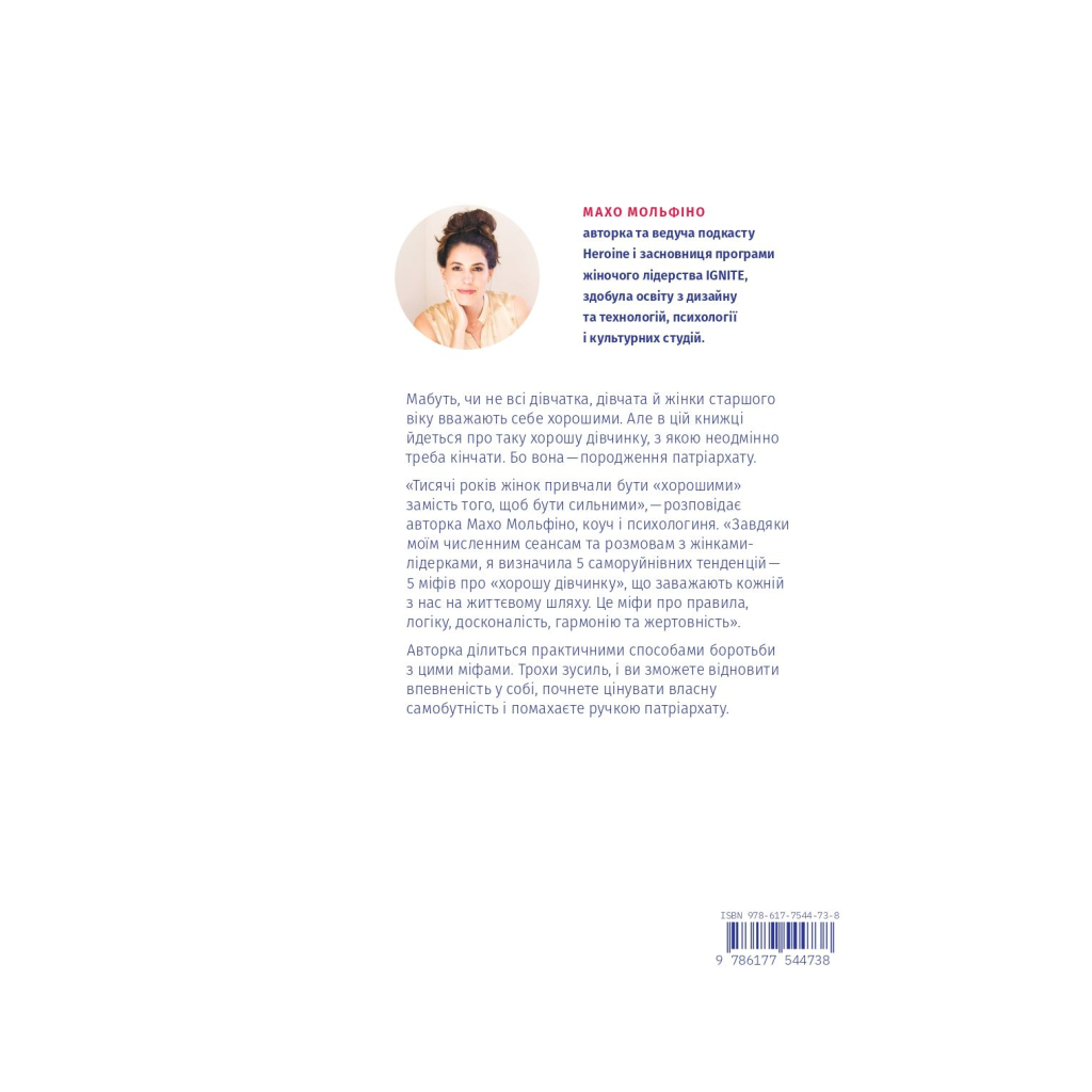 Авторка книжки, коуч, психологиня, ведуча подкасту the Heroine Махо Мольфіно завдяки досвіду, отриманому під час численних консультацій та розмов з жінками-лідерками, виділила п’ять саморуйнівних тенденцій. Це п’ять міфів про "хорошу дівчинку": про правила, досконалість, логіку, гармонію та жертовність, які кожна жінка повинна подолати, щоб мати владу над своїм життям.