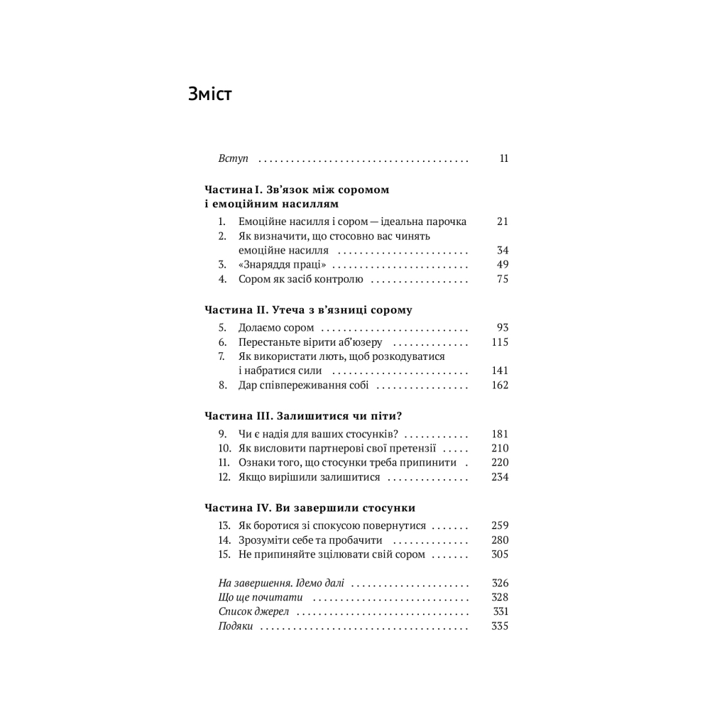 Безцінний ресурс для чоловіків і жінок, які зазнають емоційного насилля, а також для психотерапевтів і адвокатів. Підтримка, пожива й дороговказ для всіх, хто хоче розірвати пута сорому та здобути емоційну свободу для створення здоровіших і тривалих стосунків.