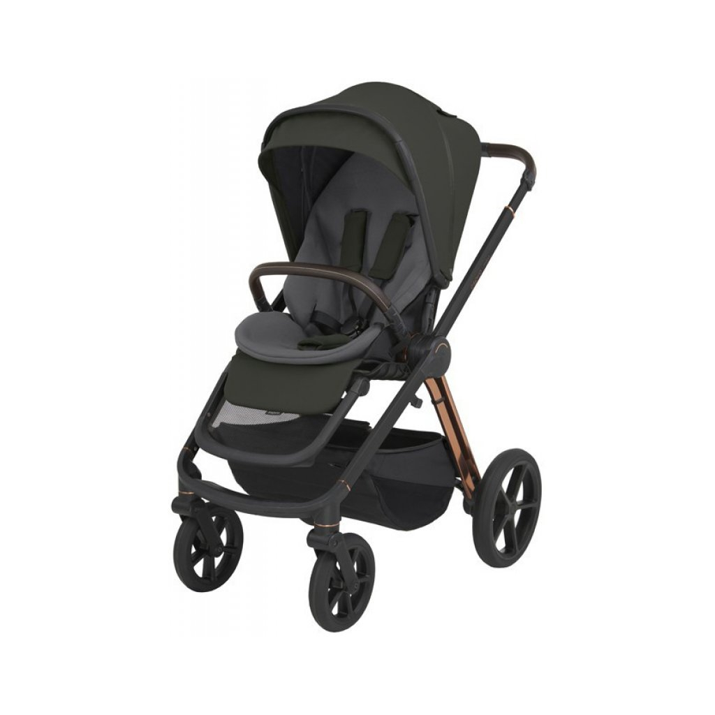 Дана модель має кілька варіантів конфігурації, включаючи систему 2-в-1 і 3-в-1, які дозволяють використовувати візок як для новонароджених, так і для немовлят. Рама універсальної моделі 2 в 1 Espiro Miloo (Еспіро Мілу) виготовлена з алюмінію, тому при високій міцності вона має невелику вагу. Навіть із дитиною, яка знаходиться всередині, мама може транспортувати візок. Невелика ширина шасі забезпечує прохідність у вузькі двері ліфтів старого зразка, маневрування між полками супермаркетів та на міських вулицях. Ідеальне рішення для мегаполісу! Модель оснащена чотирма колесами: двома більшими задніми та двома меншими поворотними передніми колесами. Всі колеса мають надувну гумову оболонку, що забезпечує більш плавну та комфортну поїздку для дитини та покращує прохідність на нерівній поверхні. Передні колеса мають можливість фіксації у прямому положенні для забезпечення більшої стійкості на прямих ділянках дороги. Гальмо центральне, виведене на вісь задніх коліс. Воно при натисканні спрацьовує миттєво, а це означає, що самовільне кочення коляски виключено.
