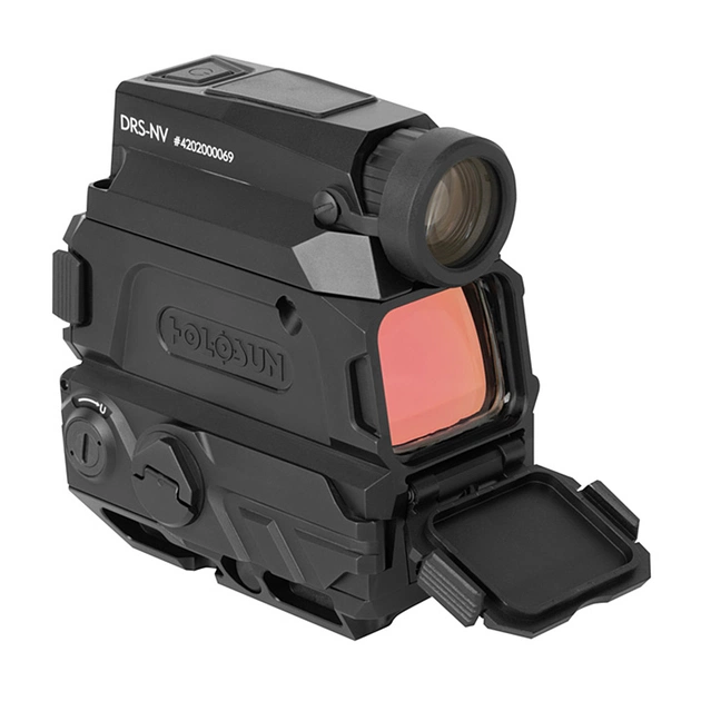 Holosun DRS-NV — це гібридний коліматорний приціл рефлекторного типу з цифровою камерою нічного бачення. Модель являє собою інноваційне рішення, яке допоможе стрілку реалізувати можливості коліматора в темний час доби. Пристрій передбачає один з трьох режимів роботи: комбінований режим, нічне бачення або тільки коліматор. Приціл можливо поєднувати з магніферами типу flip-to-side, наприклад HM3X чи HM3XT, які підвищують прицільну дальність ведення вогню.