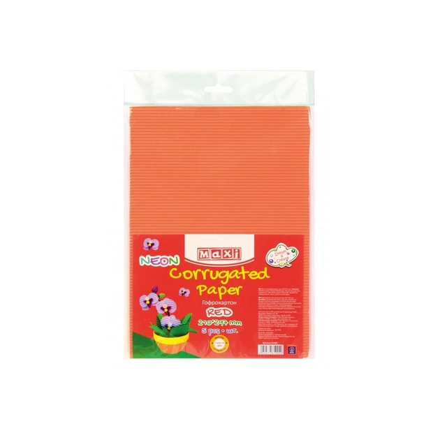 Кольоровий картон Maxi A4 Гофрокартон неоновий 21х29,7 см червоний (MX61902) - зменшене зображення 1