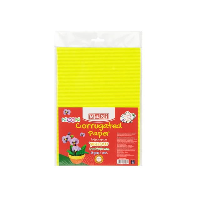 Кольоровий картон Maxi A4 Гофрокартон неоновий 21х29,7 см жовтий (MX61901)