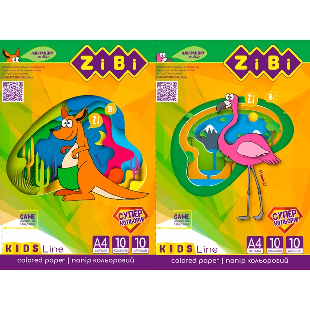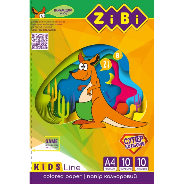 Кольоровий папір ZiBi А4, 10 листів: 4 неонових та 6 стандартних кольорів (ZB.1908)