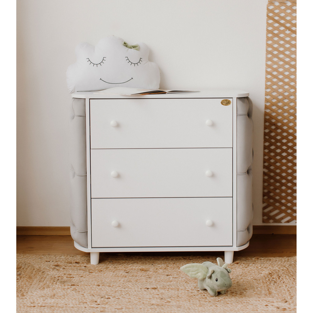 Angelo Luna – це не просто комод-пеленатор, а стильний та функціональний елемент дитячої кімнати, який привертає увагу своїм цікавим дизайном та практичністю. Цей комод призначений для найменших членів вашої родини, і його особливості роблять процес догляду за малятами максимально зручним та приємним. Однією з ключових особливостей Angelo Luna є вбудований пеленальний блок з органайзером, який робить процес проведення доглядових процедур легким та організованим. Органайзер дозволяє розмістити всі необхідні речі для догляду за малятами в одному зручному місці. Дизайн комода вражає своєю оригінальністю, завдяки м’яким бічним стінкам з високоякісного та приємного на дотик велюру. Це не лише створює приємну атмосферу в кімнаті, але і надає додатковий комфорт вашому малюкові.
