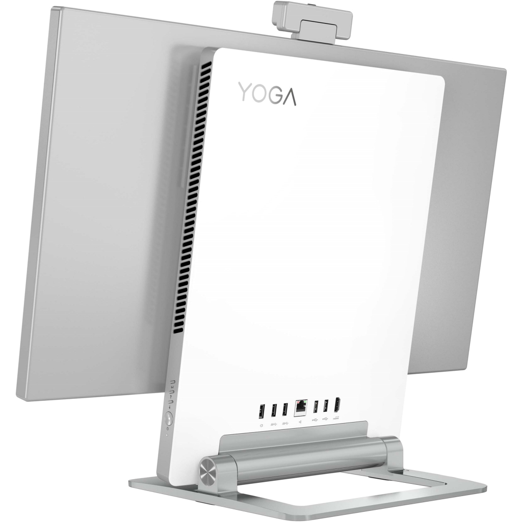 Інтерфейси (HDMI, USB 2.0, USB 3.2, порт для LAN-кабелю) розміщені на стійці, щоб кабелі підключених пристроїв не заважали при повертанні екрана.Бездротова синхронізація з периферією здійснюється за допомогою Bluetooth 5.1. Моноблок YOGA AIO 7 27ACH7 підтримує технологію Wi-Fi 802.11ax.
