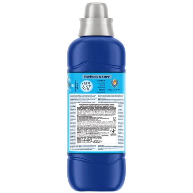 Концентрований кондиціонер Coccolino Perfume & Care із технологією Про-Файбер (PRO-FIBRE TECHNOLOGY) - допомагає захистити волокна тканини, зберегти первинні кольори та форму виробів, а також забезпечує довготривалий аромат та свіжість вашої білизни. Підходить, як для машинного, так і для ручного прання. Має вишукану ароматичну композицію, де верхньою нотою звучить цитрус, середньою – лілія, а базовою – мускус. Дарує стійкий аромат до 100** днів, завдяки подвійним мікрокапсулам парфуму, які активуються при кожному русі, вивільняючи свіжий аромат. Підходить, як для машинного, так і для ручного прання. Дарує неймовірну м'якість і захищає тканини від кашлатання. Використовуйте Coccolino Аромат парфумів та догляд при кожному пранні та насолоджуйтесь тривалим ароматом та м’якістю одягу!