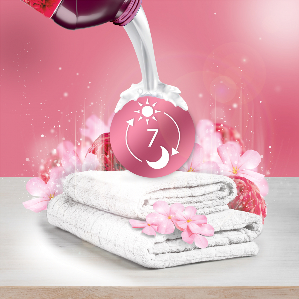 - Кондиціонер для білизни з нотами лісової суниці, яблука, персика, малини, жасмину, фрезії, вершкової ванілі та мускусу
