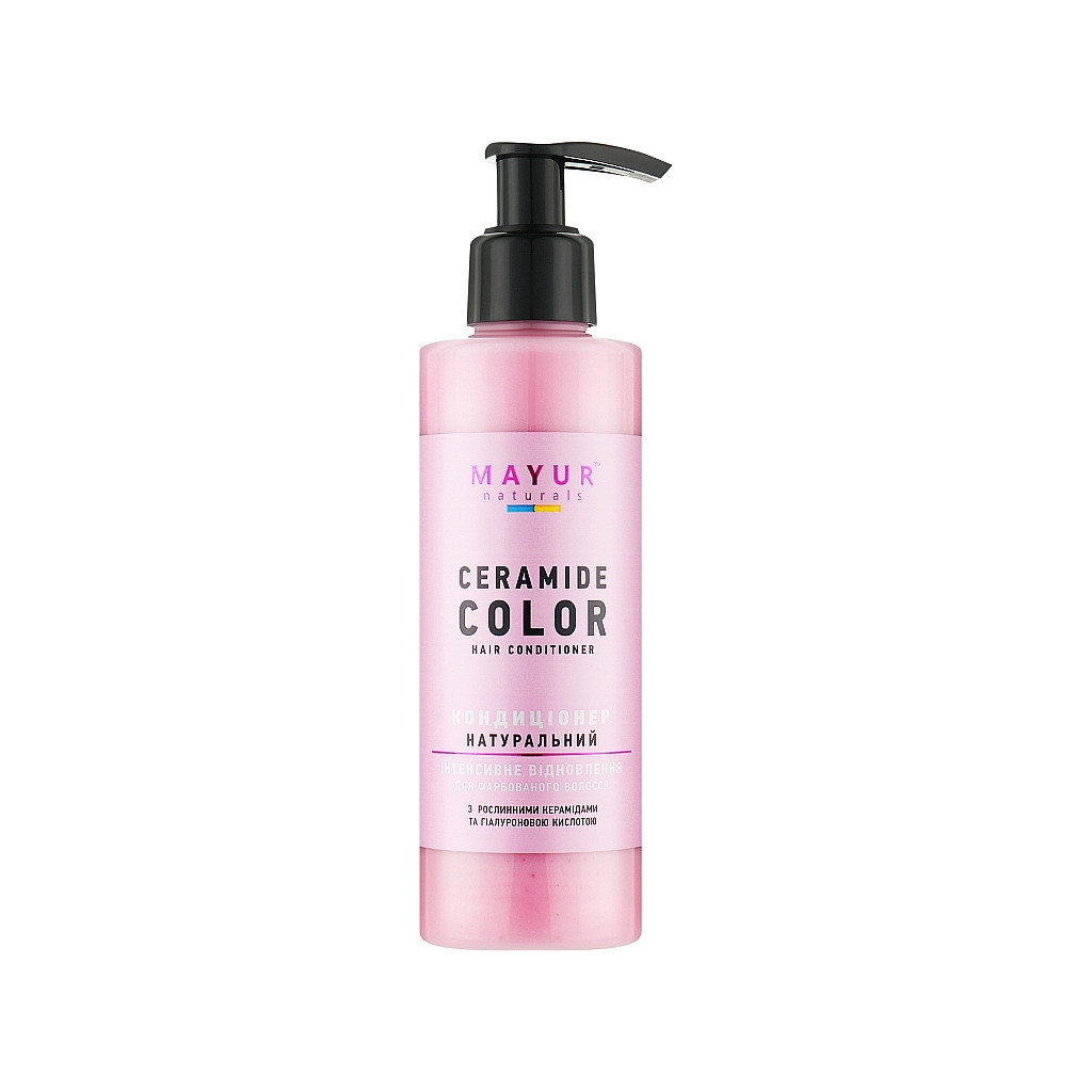 Особливості кондиціонеру для інтенсивного відновлення фарбованого волосся з рослинними керамідами та гіалуроновою кислотою від Mayur: