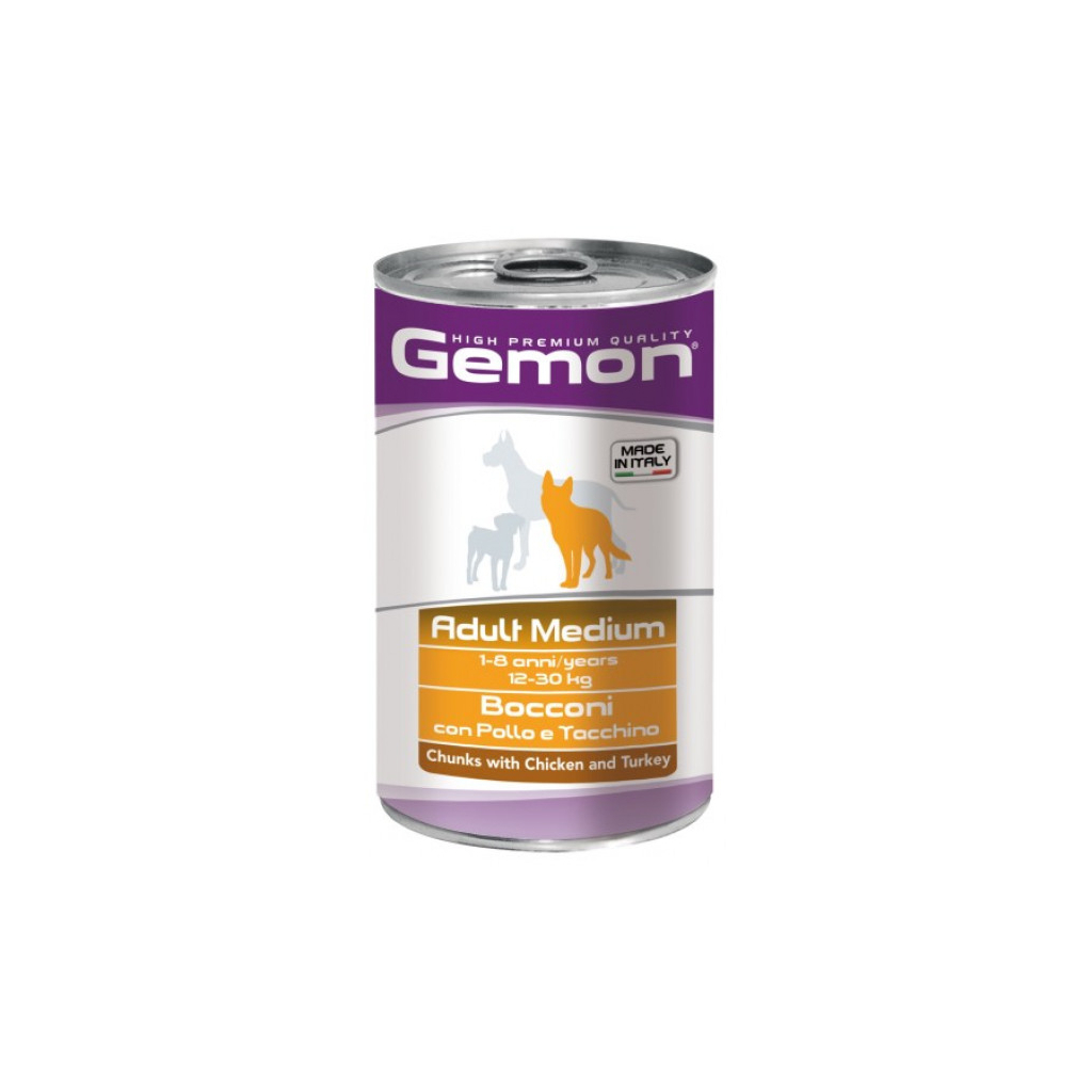 Консерви для собак Gemon Dog Wet Medium Adult шматочки з куркою та індичкою 1.25 кг (8009470387927)