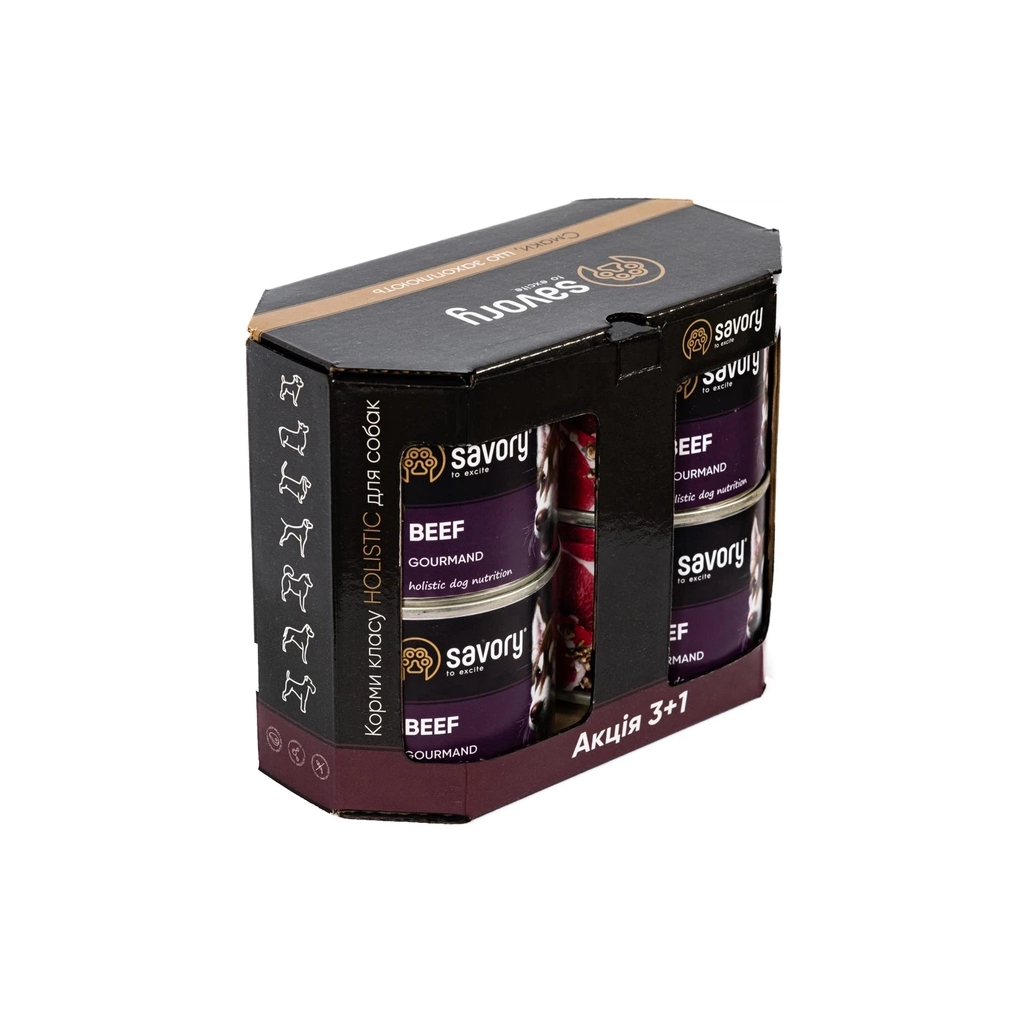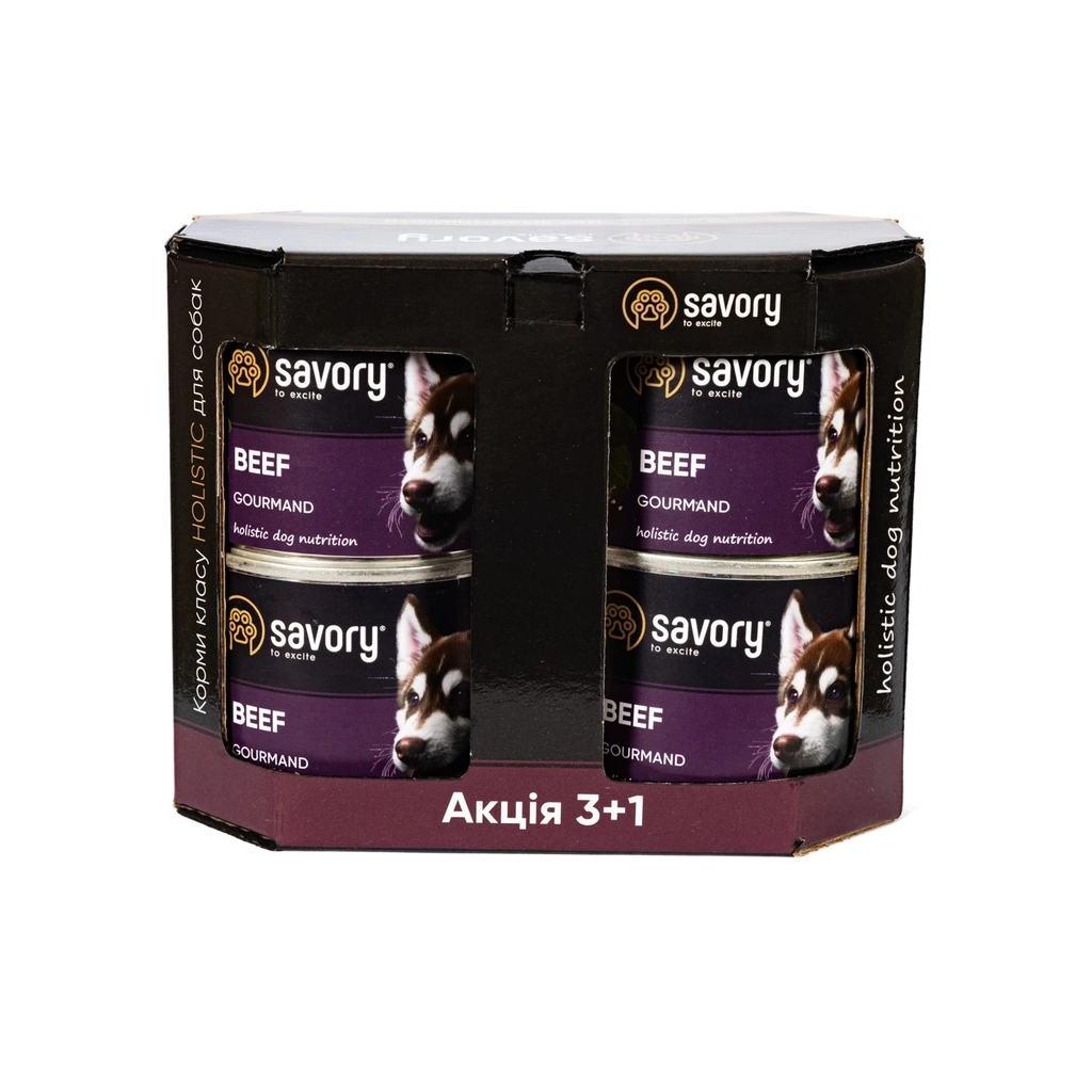 Консерви для собак Savory Gourmand "3+1" з яловичиною 4 шт х 200 г (2700000032701)