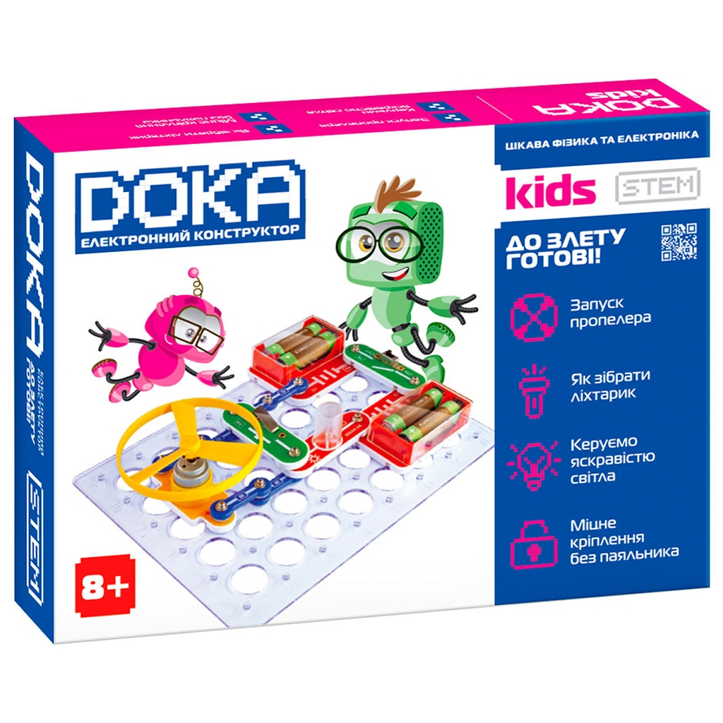 Цей конструктор розвиває творче мислення, увагу, логіку та пам'ять, роблячи навчання захопливим. Ідеальний як для самостійного збирання вдома, так і для освітніх занять у групах. У комплекті також є монтажна плата і посібник, які допоможуть легко зануритися у світ електроніки. Для роботи знадобляться 4 батарейки АА (не входять у комплект). Розкрийте талант вашої дитини разом із конструктором DOKA!