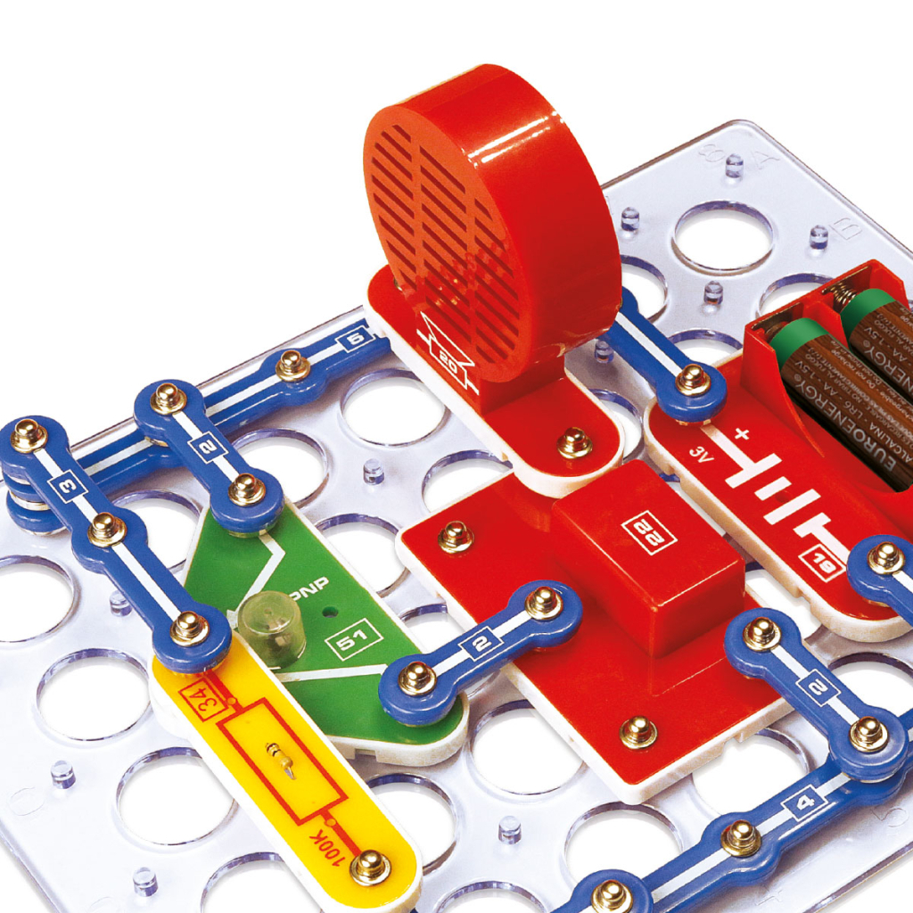 Завдяки 15 унікальним схемам, дитина дізнається, як збирати різні електронні пристрої, використовуючи метал і пластик без необхідності небезпечного паяння. У комплекті є прості у використанні провідники, резистори, транзистори та багато іншого. Навчальний посібник містить теоретичні пояснення та завдання, що робить процес пізнавальним і плідним.