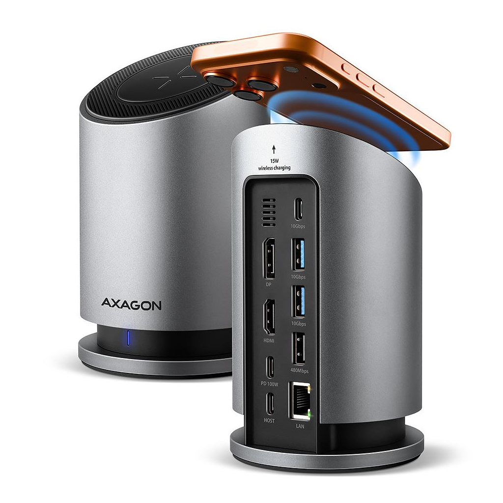 Концентратор AXAGON USB-C 9-in-1 wireless 15W PD100W 0.6m (HMC-WL9)