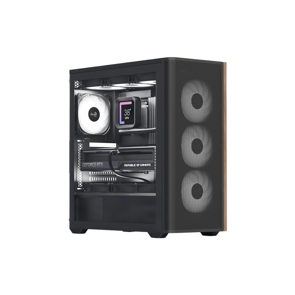 Для тих, хто віддає перевагу рідинному охолодженню, AeroCool D501A пропонує підтримку радіаторів діаметром до 360 мм на верхній або передній панелях. Це робить корпус ідеальним вибором для високоякісних компонентів, що вимагають максимального охолодження. Ваші процесори з максимальною висотою кулера до 171 мм та відеокарти довжиною до 400 мм знайдуть тут своє найбезпечніше укриття.