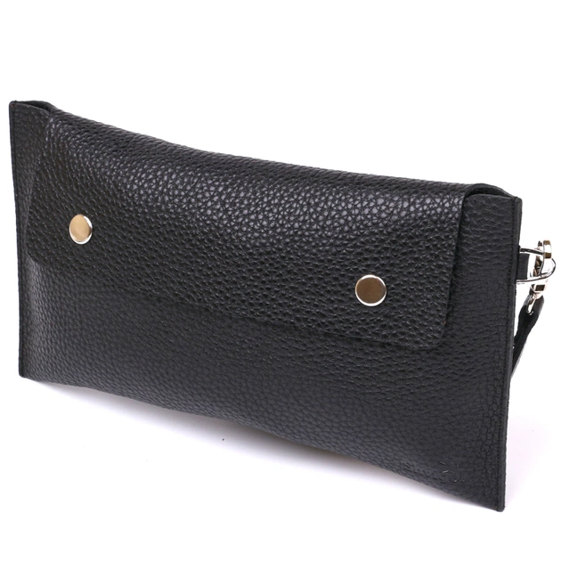 Дуже практичний та корисний аксесуар для жінок та чоловіків – тревел-косметичка. Виконана вона із натуральної шкіри високої якості з покращеними експлуатаційними характеристиками. Закривається на клапан із двома кнопками, що дуже зручно у використанні. Фактура виробу – зерниста, колір – універсальний чорний. У такій косметичці можна зберігати документи чи інші цінні речі.