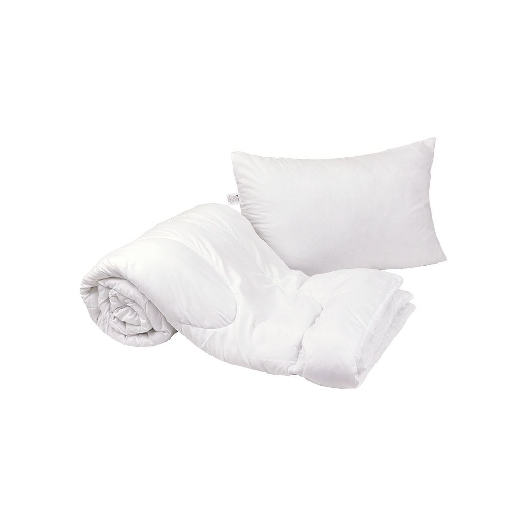 Набір ковдра 140*205 + подушка 50*70 з силіконовим наповнювачем Ковдра силіконова 140*205. Наповнювач силіконізоване волокно щільність 300гр/м.кв. Чохол: мікрофайбер (ПЕ100%) Упаковка: пакет Як дорогі, так і дешеві ковдри з силіконовим наповнювачем виготовляються з синтетичного силіконізованого волокна. Вони відрізняються м'якістю, легкістю і пружністю. Вироби з з цим наповнювачем можна прати, вони швидко сохнуть, не накопичують неприємні запахи і є гіпоалергенним. Подушка 50*70. Наповнювач: антиалергійні силіконізовані поліестерові кульки (ПЕ 100%) вага 650гр. Чохол: мікрофібра (ПЕ 100%). Упаковка: пакет Виріб можна прати в пральній машині при температурі не більше 40 градусів. Кульки силіконізовані – гіпоалергенний матеріал, що використовується для наповнення подушок. Його скручують у кульки у вигляді пружинок. Матеріал не викликає алергії, не вбирає в себе запахи. Він добре тримає форму, швидко відновлюється після деформації, не «звалюється» після довгого застосування. Такий наповнювач забезпечує повноцінний і здоровий сон.