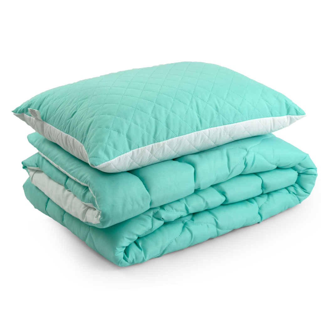 Ковдра Руно набір ковдра 140х205 + 1 подушка 50х70 силіконова Бірюзовий (К_924.52СЛ200_Бірюзовий)