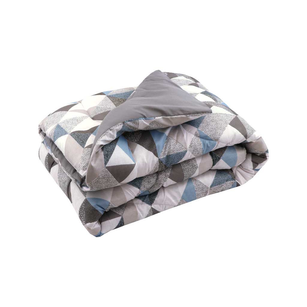 Демісезонна, стебнована ковдра Абстракція виконана в дизайнерському колірному рішенні. З одного боку геометричний малюнок з іншого - однотонна тканина. Спокійні і стримані кольори ковдри, будуть гармонійно виглядати в будь-якому інтер'єрі спальні. Якісне стебнування надійно тримає наповнювач всередині ковдри, зберігаючи його пишність і прекрасну теплоту навіть після прання. Наповнювач добре тримає форму, не скачується всередині і не деформується з часом.