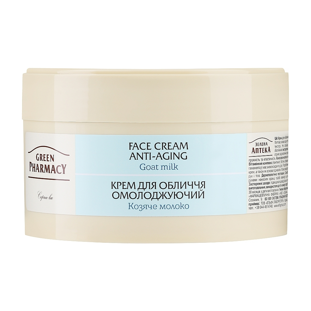 Після 30 років перед кожною жінкою постає завдання збереження молодості і свіжості шкіри обличчя. Український бренд «Зелена аптека» розробив крем, за допомогою якого ви зможете підтримувати шкіру еластичною, гладкою, здоровою і сяючою. Крем для обличчя з козячим молоком має легку збалансовану текстуру, тому він не забиває пори і швидко вбирається. Косметичний засіб приємно наноситься, не викликаючи відчуття жирності і липкості.