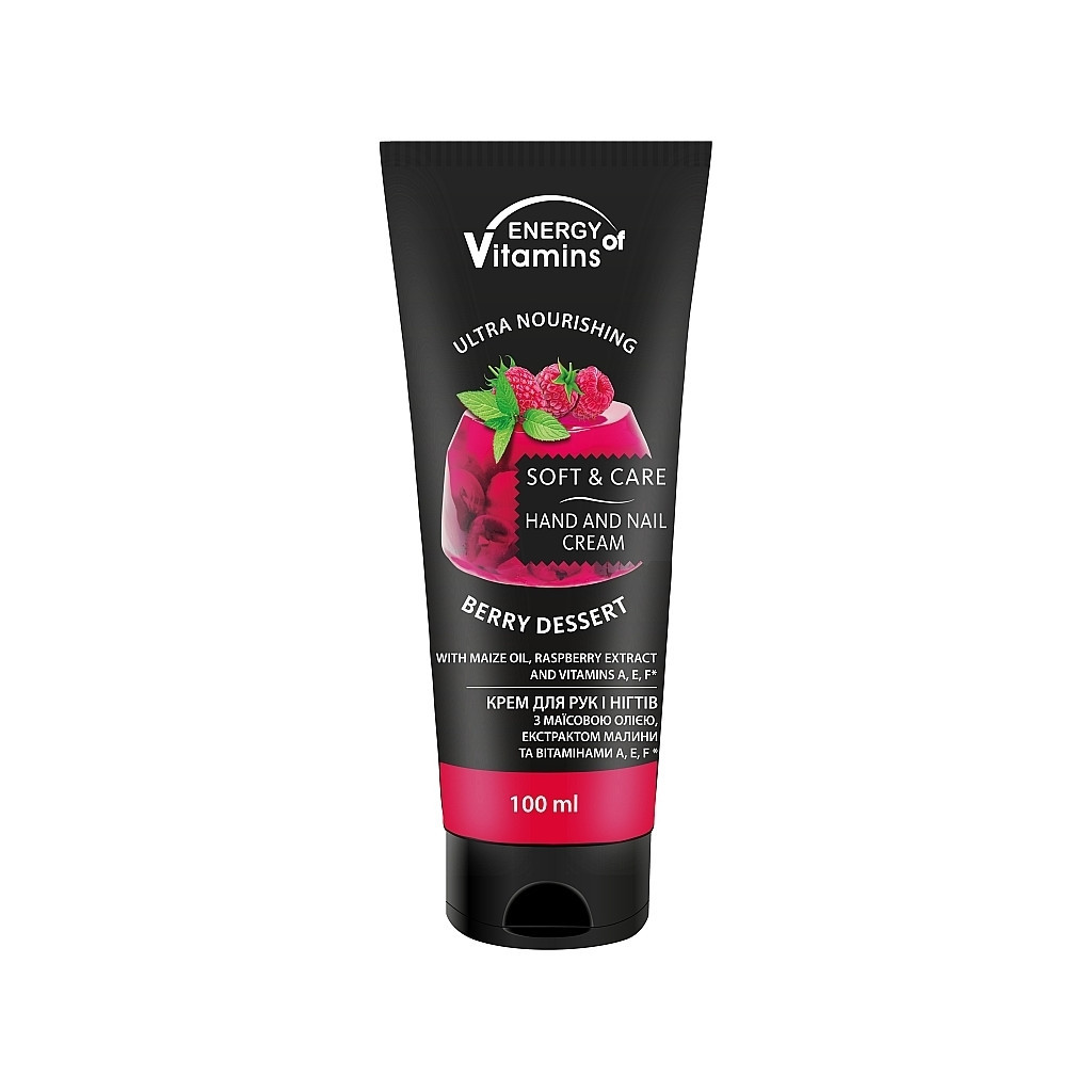 Відкиньте всі сумніви, дивлячись на цей солодкий ягідний десерт! Він не завдасть шкоди вашій фігурі, а ось ручкам поверне гладкість і шовковистість. Ніжний крем Energy of Vitamins Soft & Care Berry Dessert подбає про красу і здоров'я шкіри рук, а також про міцність нігтів. Засіб забезпечує ультразволожувальну дію, а ще ефективно захищає від сухості і виникнення мікроушкодження.