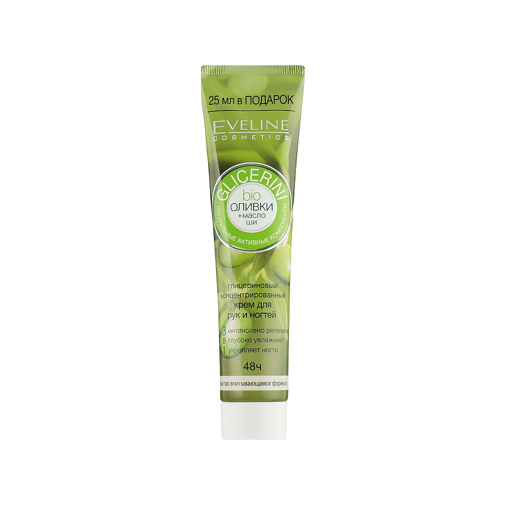 Основою косметичної формули є гліцерин із біооливками та масло карите. Завдяки потужним активним компонентам нової генерації засіб має зволожувальні й живильні, пом’якшувальні та захисні властивості для ефективного відродження шкіри. Продукт доглядає за кутикулою і забезпечує зміцнювальний вплив на нігтьові пластини. Концентрований крем дарує жіночим ручкам особливу м’якість, неймовірну гладкість і шовковистість, дозволяючи шкірі як можна довше залишатися без ознак передчасного старіння!