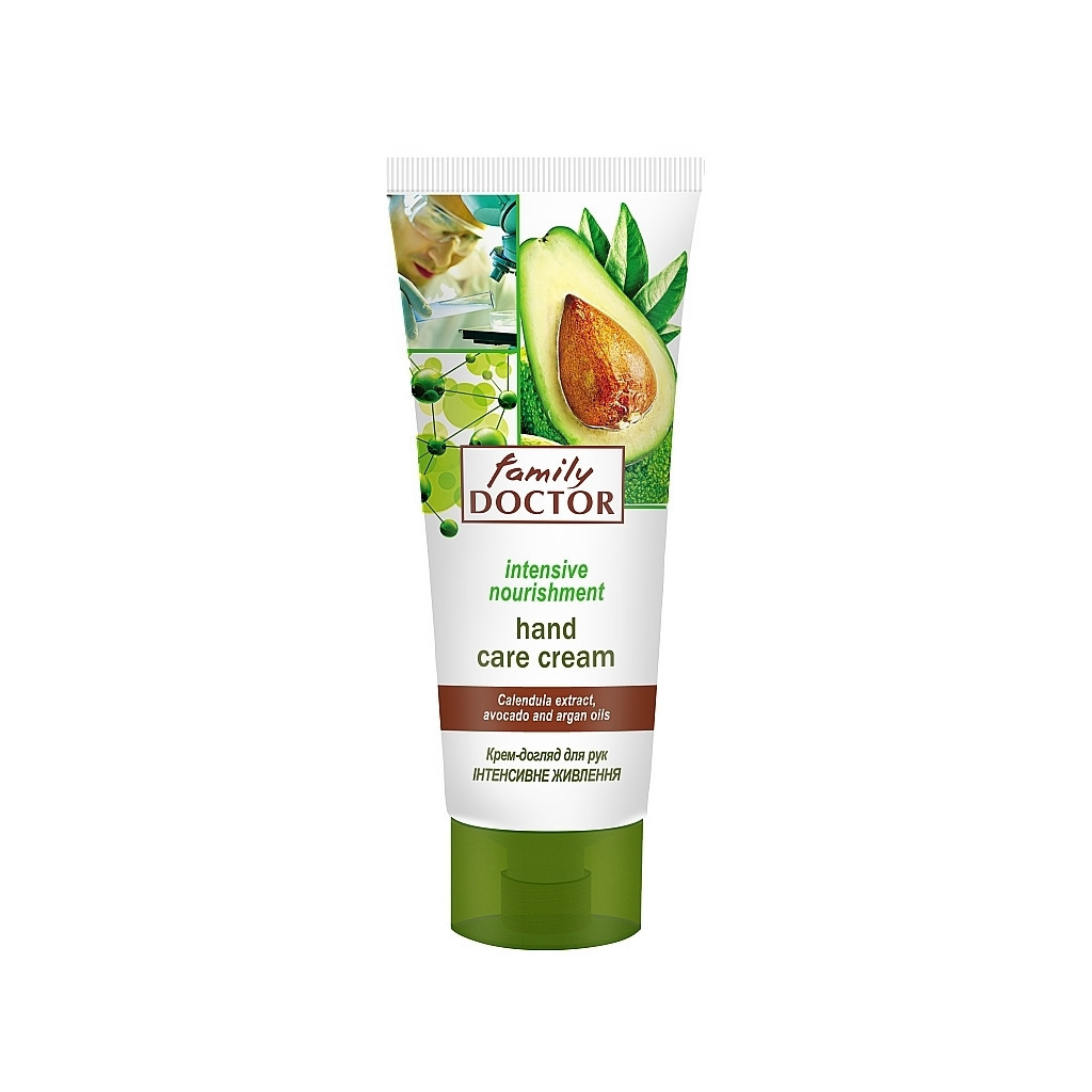 Крем Family Doctor збагачений екстрактом календули, оліями авокадо й арганії. Засіб сприяє інтенсивному живленню шкіри рук, забезпечуючи її корисними мікроелементами.