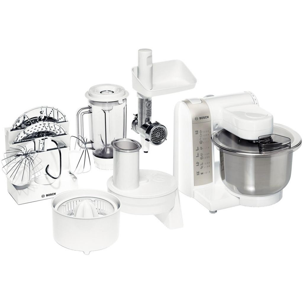 Кухонний комбайн BOSCH MUM4880 (MUM4880) допоможе позбутися від рутинної роботи у Вас на кухні. Він має чашу для замішування з прозорою кришкою з отвором для додаткового завантаження. Макс. ємність чаші 3.9 л, можливість замісу до 2.7 кг тіста (1 кг борошна + інгредієнти). Крюк для тесту, віночок для рідкого тесту, віночок для крему. До Вашого розпорядження насадка-м'ясорубка з формувальним диском 4,5 мм, піддоном для м'яса і штовхачем, прес для цитрусових, блендер.